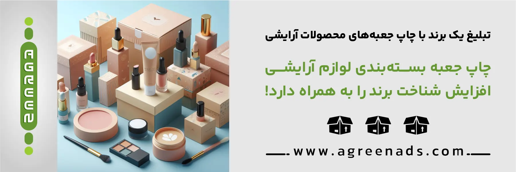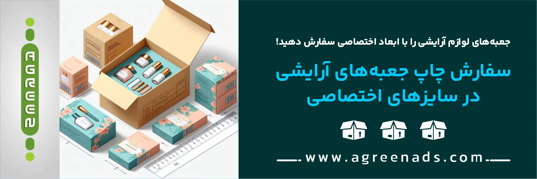 لوازم آرایشی از جمله محصولاتی به شمار میروند که نیاز به بستهبندی کاربردی و جذابی دارند. در چاپ آگرین، میتوانید برای سفارش چاپ اختصاصی انواع جعبه آرایشی اقدام نمایید. طراحی جعبه آرایشی در چاپ آگرین متناسب با نوع محصول و کاربرد آن صورت میگیرد و شما میتوانید برای تمامی لوازم آرایشی مناسبترین جعبه بستهبندی را سفارش دهید. لوازم آرایشی علاوه بر یک جعبه کاربردی برای بستهبندی، به یک جعبه چاپ شده جهت کاربرد تبلیغاتی نیز نیاز دارند. برای استعلام قیمت سفارش چاپ انواع جعبه آرایشی در آگرین، تنها کافیست تا فرم ثبت سفارش در انتهای این صفحه را پر کنید تا در کوتاهترین زمان ممکن قیمت چاپ جعبه آرایشی مورد نیاز شما طراحی شود.